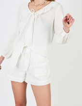 The white ruffle blouse. A favourite of ours. It's just heaven to wear and throw on over anything, from bikinis to jeans. With a boho feel via its ruffled collar & tie detail, you can be the free spirit you've always wanted to be.