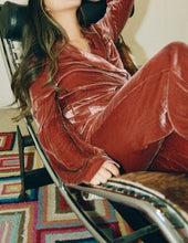 These Velvet trousers were made to leave a lasting impression with their bold copper hue. We like to wear them with the matching Copper velvet jacket to go from the office to a dinner soiree with friends, or just a black t-shirt for a more casual look around the house.