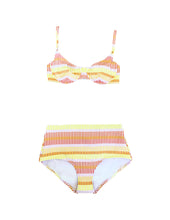 The sun is coming so grab yourself a trusty solid & striped beach look. This Ginger Bikini in Technical Mosaic Sorbet print with underwiring, thick back straps is nothing if not flattering. Wear with matching high-waist bottoms for the full beach look or slip a dress on top for beach lunches.